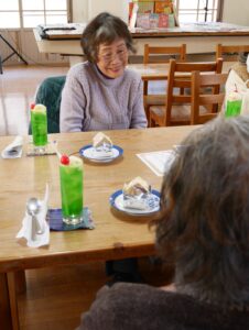 5度目の懐かし喫茶でした。レコードが流れる中、徐々に人が集まり、どんどん賑やかに。今回は、常連さんに加え、若い方やお子さん連れの親子参加もあり、和気あいあいとした和やかな雰囲気でした。楽しそうに地域の方と会話する姿が見られました。