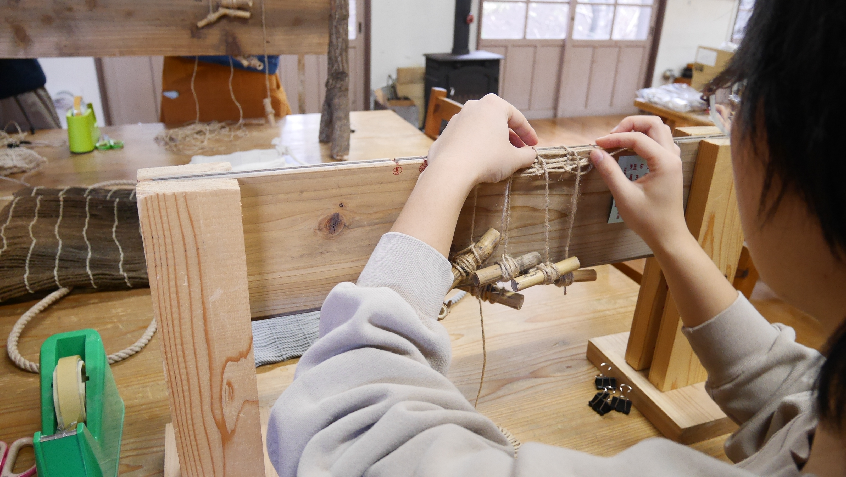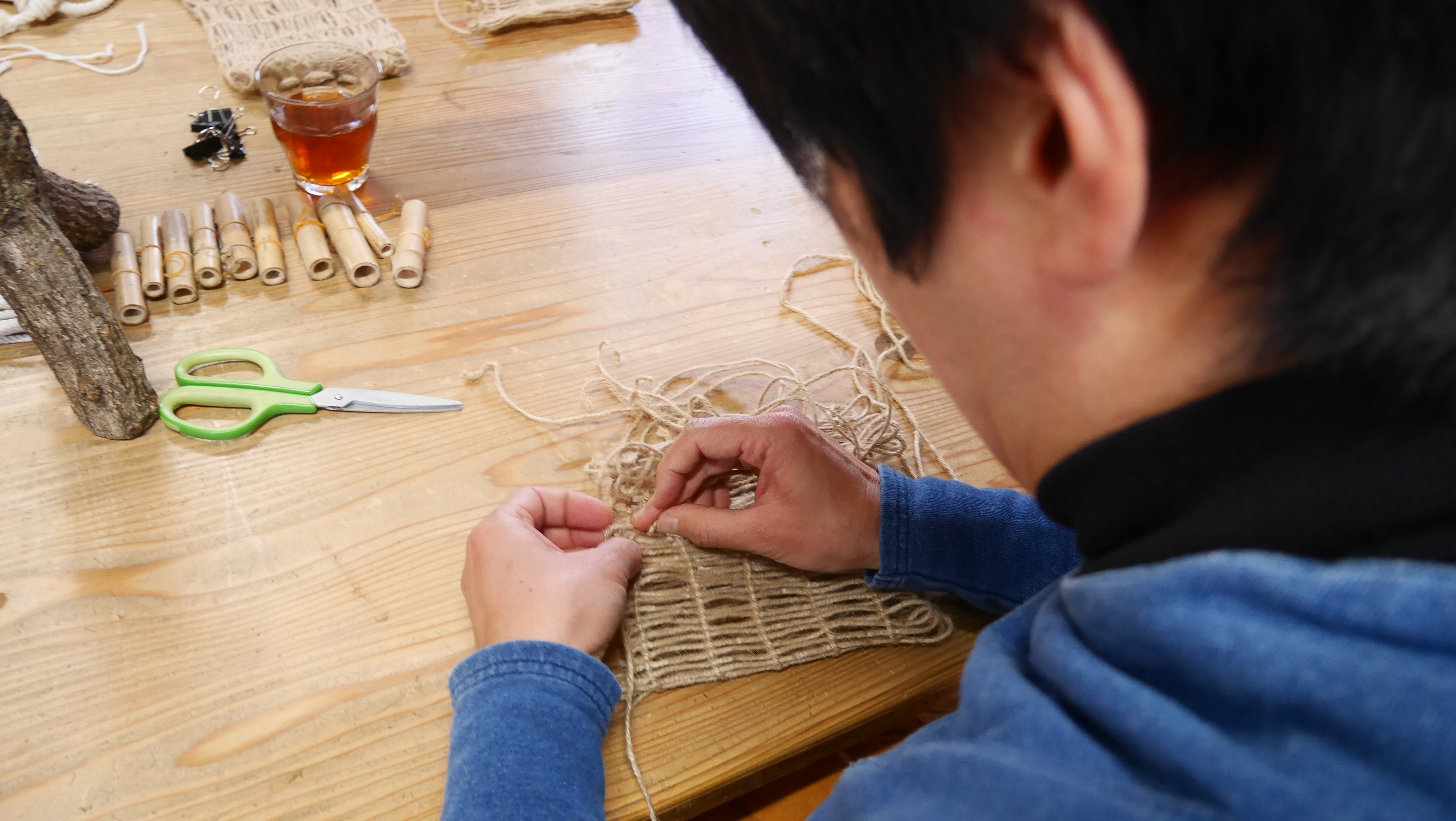つかりについてのお話や、講師の伊藤さんが作り方を習うことになった経緯などのお話を聞いた後、編み方を習い実践しました。参加者の皆さんは終始熱心に作業に集中し、素敵なサコッシュを完成させていました。達成感や没頭する楽しさを味わえるものづくりの良さを改めて感じられるイベントになりました。海士町の大切なものを継承していく手助けになったようでうれしくも感じました。記:Müller
